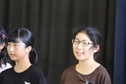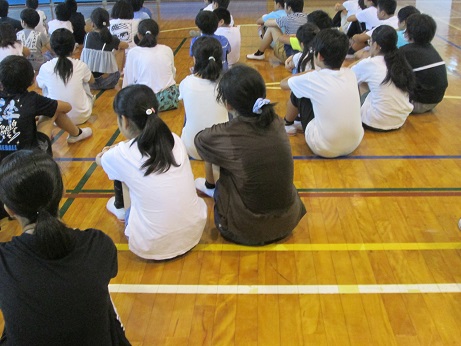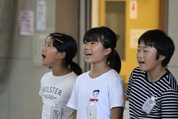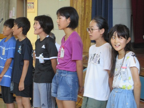 夏休み前の全校集会では、校長先生のお話の中で6年生が全校に歌を歌う場面がありました。