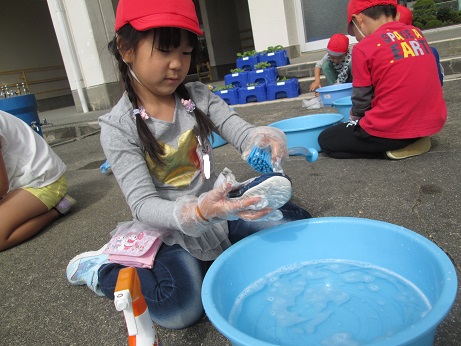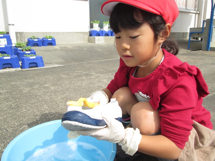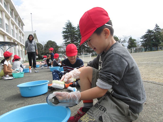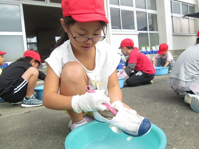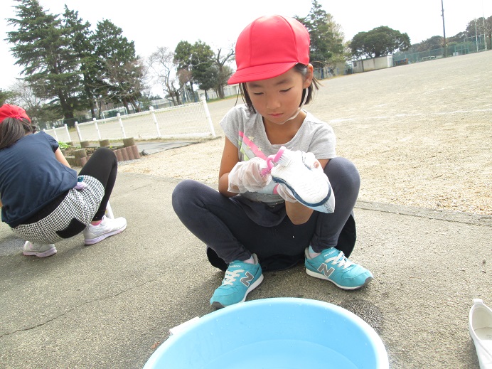 26日に生活科学習「上ぐつ洗い大作戦」決行しました!!!