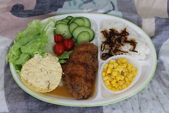 昨日の夜の残り物をただ握ってきただけと谷下先生は言ってましたが、「それがAコースなのか。」と、現在牧小教職員は職員会議中です。