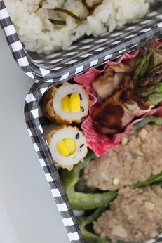 卵焼きも、きれいに焼けていました。ちょこっと枝豆を入れるあたりが、しゃれおつです。かわいすぎるので、「本当に教頭先生が作ったのか・・・。」という疑惑もありますが、本人は頑なに「自分だー。」と言ってます。でも、実においしそうなお弁当でした。