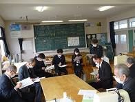 今まで、学校の先生方と面接練習をしてきた3年生。地元の役員さん、学校運営協議会委員さん、矢崎ものづくりセンターの方など8人の方が参加してくださいました。