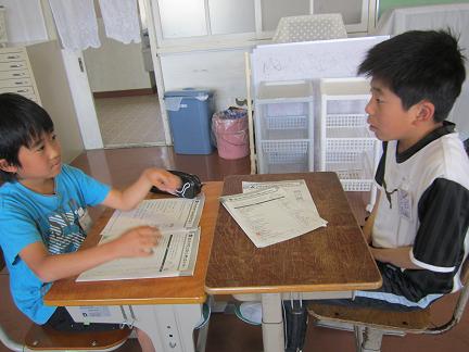 道徳で、「自分と友だちのいいことみつけ」をやりました。なかなか自分のいいところをしっかりつかんでいました。また、友だちのいいところもそれぞれみつけることができてよかったです。亮太さんが見つけた自分のいいところは、あいさつができる、なんでも食べる、宿題を忘れない、友だちが見つけてくれたいいところは、やさしい、にこにこしている、絵が上手、一輪車が上手でした。沙織さんが見つけた自分のいいところは、明るい、おもしろい、いろいろな運動ができる、友だちが見つけてくれたいいところは、やさしい、いろいろ教えてくれる、かけ足をがんばっているでした。最後に、沙織さんが、みんなに褒めてもらうと、気持ちがほっとして、不安がなくなるよと言いました。そんな気持ちになってくれてうれしかったです。