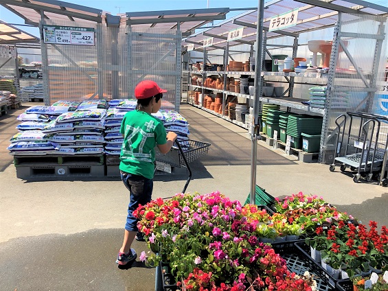 かがやきさんでコメリにお買い物に行ってきました! 目的は、野菜の苗を買うこと! 去年は、先生が買ってきていましたが、今年は野菜の苗を準備するところから勉強して欲しいということで、お金の勉強も兼ねて、お買い物に行ってきました。