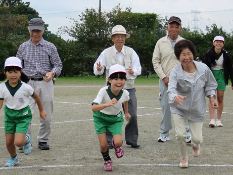 毎年恒例の祖父母種目。みんなの笑顔がとってもいいです。