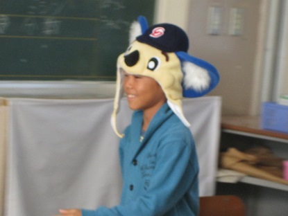 これは、英語の授業にキマシ先生が持ってきてくれたかぶりものです。