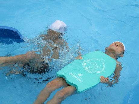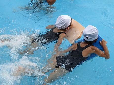 |   | 夏はやっぱりプール 今日は午後からの天気が心配されたものの、無事プール開放を行うことができました。私も夏休みに入り、 初のプール当番で子どもたちのプール指導、監視にあたりました。 ほぼ一週間ぶりに子どもたちに会いましたが、みんな少し焼けて黒くなったように思います。前半は、2年生と一緒に逆立ちをしたり、こおり鬼をしたりしました。後半は、自由時間。体育の時間には使っていなかったビート板がみんなお気に入りのようで、サーフィンのように乗ってみたり、3個ほど重ねて泳いだりといろいろ楽しい使い方を考えてビート板を嬉しそうに使っていました。 1年生ですが、水泳の帽子が4つほど忘れてありました。また、プールカードの忘れ物もありました。忘れ物に注意して来週もたくさん泳いで、夏を満喫したいですね。