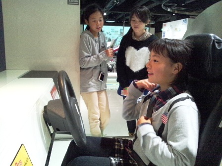 ただいま科学技術館です。 ここでは、様々な体験をしながら、科学技術について学ぶことができます。 車やバイクの環境に優しい技術や鉄のおもしろさなど、たくさん体験することができました。