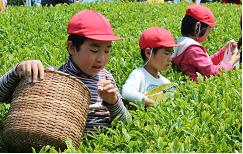 今日の3時間目にお茶摘みをしました。5年生、中学生と一緒にやりました。