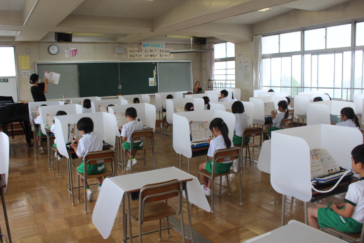 みんなが密集しての合唱は無理としても、せめて鍵盤ハーモニカやリコーダーはやらせてあげたいし、歌も歌わせてあげたい。そう考えて、飛沫防止のパーテーションを設置して、音楽も楽しむことができています。