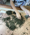 手揉み茶は下からガスで温められた台の上で作りますが、かなり熱いです。手を動かし続けなければ、茶葉がパサパサになってしまうので大変です。グループごとにおいしいお茶を作るために協力してがんばっていました。がんばった手のひらは緑色になっていました。できあがった手揉み茶は、グループ別に袋詰めしました。同じようにやっているのに、違いがでるのがおもしろいですね!