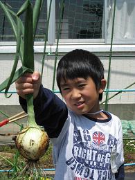 昨年の秋植えたタマネギが、とても大きくおいしそうに生長しました。タマネギの苗を作っている農家ののおばさんから、お願いして譲ってもらったタマネギの苗だけあって、とてもおいしそうです。近々、ご家庭にも持ち帰ります。学校では、カレーなど作っておいしくいただきたいと思っています。
