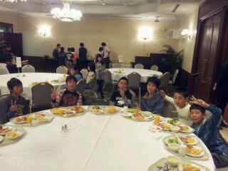 こんなに大きな円卓で、みんなと食べるのはうれしいです。