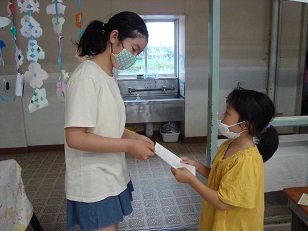 渡す前はどきどきしていた子供たちでしたが、ペアさんに優しく受け取ってもらえた