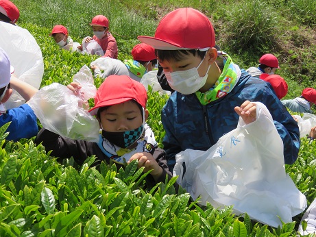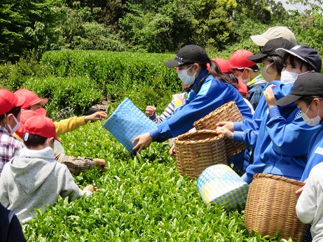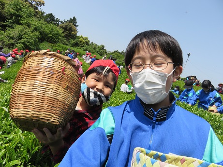 お茶畑の葉を見つめながら、手を動かして摘んでいると無心になることができました。脳のリフレッシュ効果にもなるそうです。小学生と中学生の歓声と、鳥のさえずりもあちこちで聞こえ、とてもきもちのよい一日となりました。