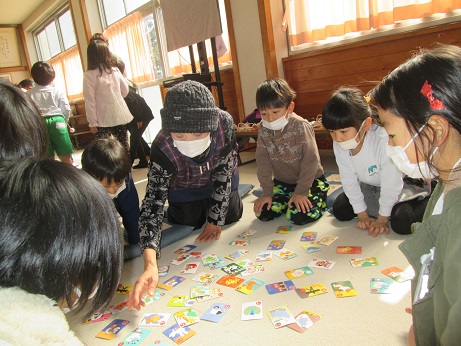 この日は、5種類の遊びをしました。 ①かるた