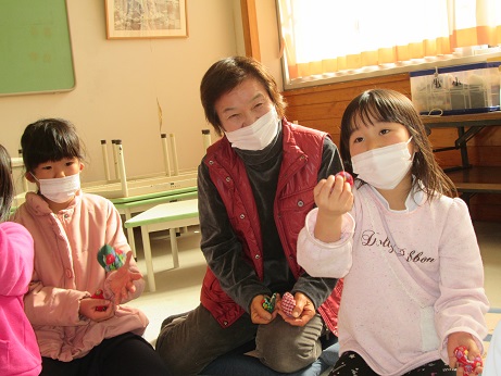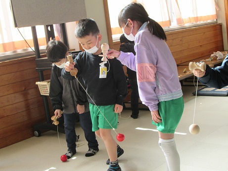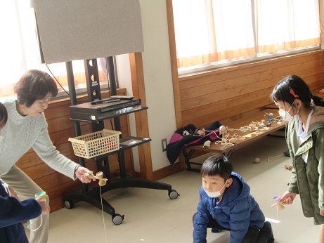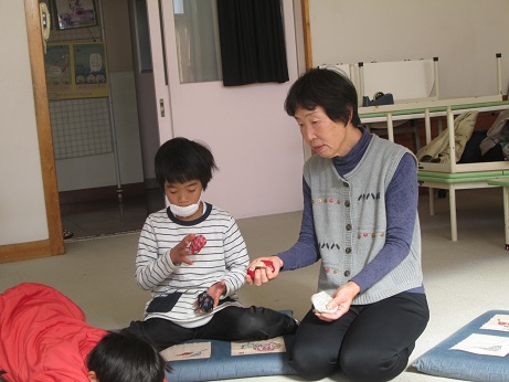 |   | 今年も、祖父母の会のみなさんに昔の遊びを教えていただきました。