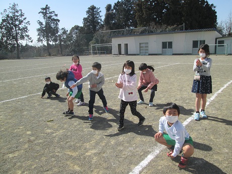 竹とんぼは、初めての子が多かったですが、だんだんコツをつかんできました。 みんなで並んで、「せーの!」 誰が一番飛ぶかな? 風に乗ると気持ちいいね!