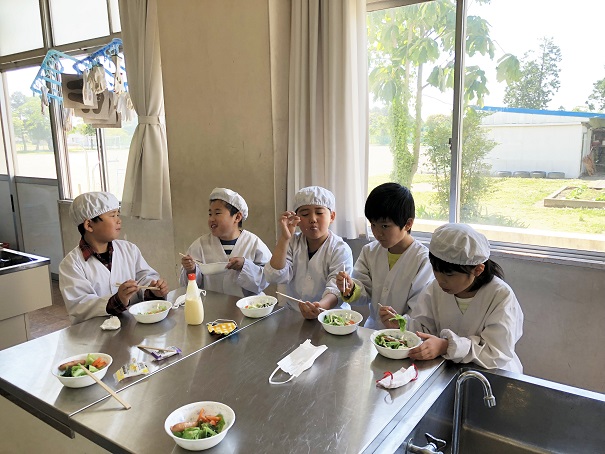 できたサラダをみんなで食べよう!