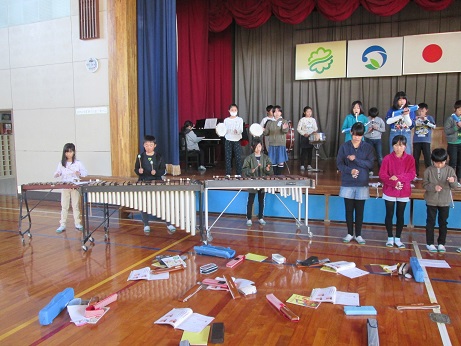 1時間目は音楽。今日は、ウインターコンサートに向けて、体育館での練習をしました。