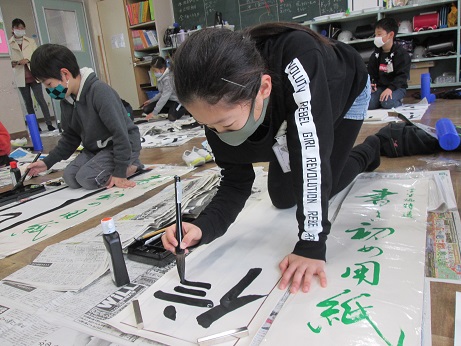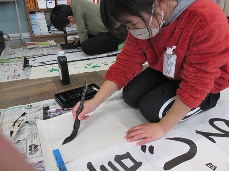 |   | 文化部さんのページにもありますが、書き初めをしました! 集中している姿がかっこいいので、見てください!