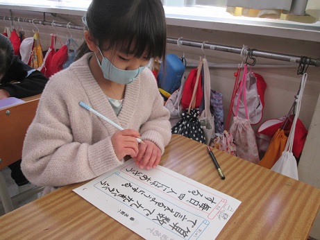 2年生は書き初めにプラスして新年のめあてを書きました。