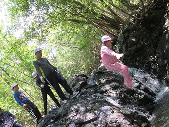 いよいよ3日目 沢登りです。大きな滝壺に飛び込みます。