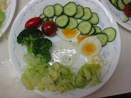 21日火曜日の3~4時間目に「ゆで野菜でサラダを作ろう」の調理実習がありました。たまごをゆでたり、キュウリの輪切りに挑戦したり、好みのソースを作ったりしました。亮太さんも沙織さんもゆでたまごを作る時の時計係をやったり、キュウリを上手に輪切りにしたりしていました。また、班の友だちと楽しく会食しました。