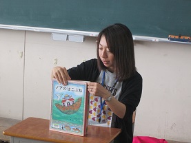 読み聞かせがありました。阿形翔さんのお母さんです。