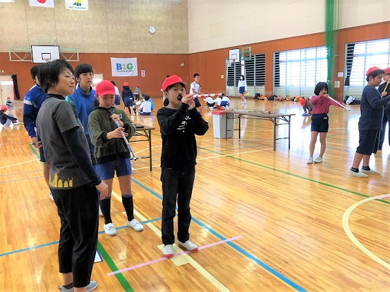 代表で司会もやりました。 緊張してますが、いつもの放送委員会で鍛えた、すばらしい司会でしたよ! いつもは数人で過ごしていますが、交流会では他の小中学校の子と一緒に遊べるので、 人との関わり方の勉強にもなります。 とっても楽しい1日でした。