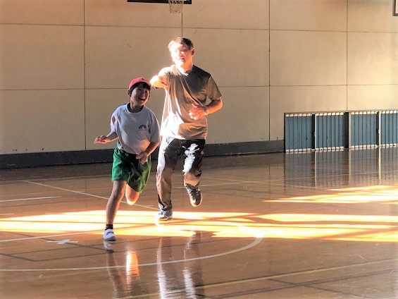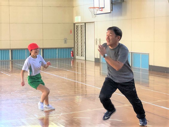 校長先生と一緒にケイドロをして遊びました。 とても楽しく、みんな走り回っていました。 牧小の校長先生はとっても足がはやいので、全員本気で戦いました。