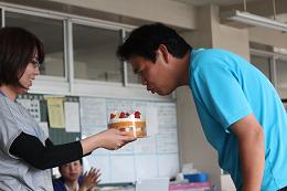 職員室ではすっかり恒例となった、職員みんなでのお祝いです。
