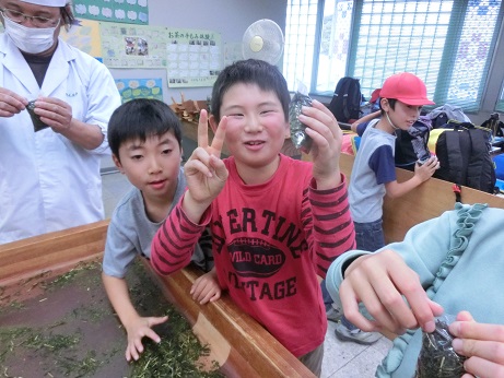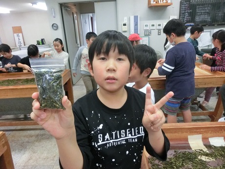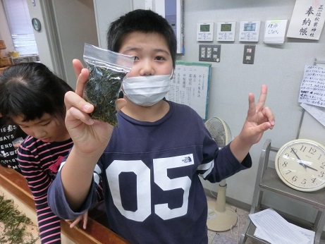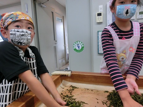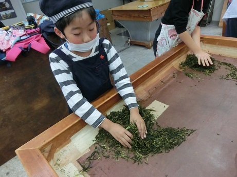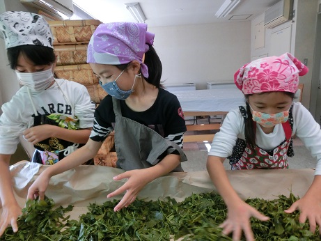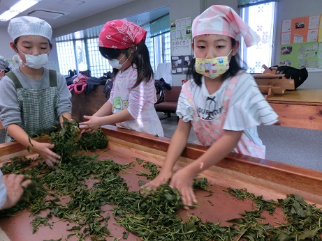 11月7日に3年生でお茶の手揉み体験をしました。5月に自分たちで摘んだ生葉を1日かけてもみました。