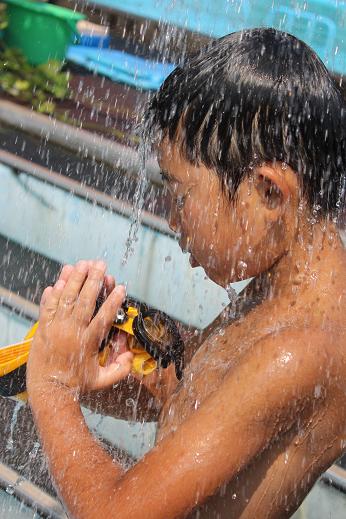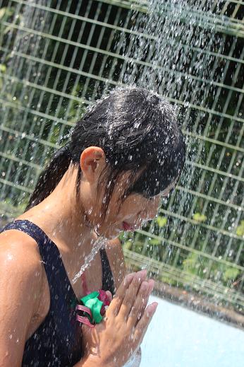 プールとのお別れを惜しんで、最後までシャワーを浴び続ける子がいました。