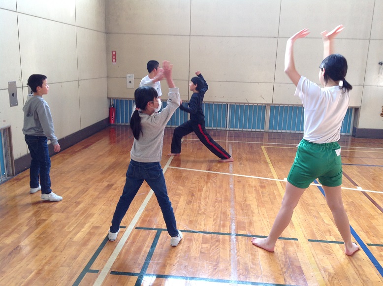 上着を着ていた6年生の子は、4年生を教えている途中で上着を脱ぎ捨てました。「ここが伸びてないと合格がいえないじゃん。」とすばらしいコーチング術をする子。手取足取り丁寧に丁寧に教えてくれている子。自分の担当の班が上手になっていくのを、本当に嬉しそうに手をたたきながら励まし続けている子。