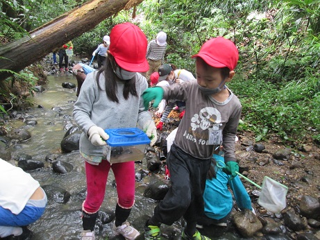 赤ちゃんのかには、大きくなったらまた会えるように、川に帰してあげました。